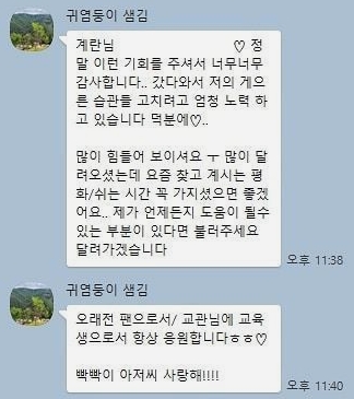 또 빡빡이 김계란 님이 샘김과 나눈 카톡 메시지를 공개했는데요. 샘김의 열정이 느껴지는 내용이었습니다. 어서 어서 좋은 소식 들고 오길 바라면서 '가짜사나이2'를 볼 수 있는 유튜브 채널 <피지컬갤러리> 주소 알려드립니다.
