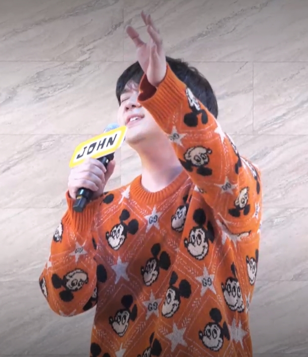 예쁜 존 전용 마이크에 미키마우스 오렌지색 니트입고 피아노맨을 시작으로 10곡이 넘는 노래를 불러줬습니다.