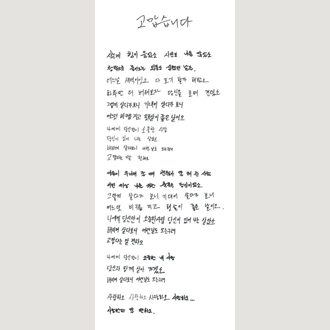 손글씨 가사 이미지가 공개되었는데요. 글씨가 참... ㅋㅋㅋ