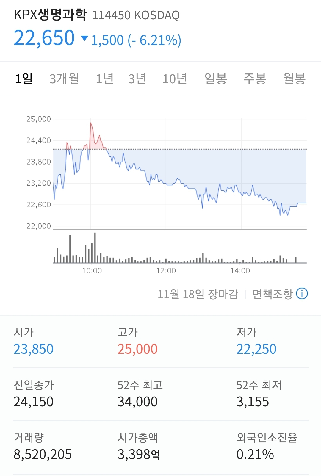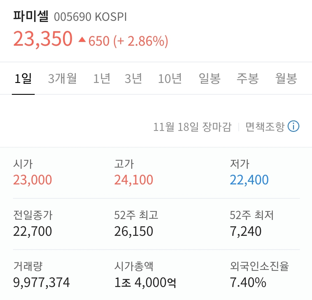 전거래일 대비 2200원(8.35%) 내린 2만4150원에 마감