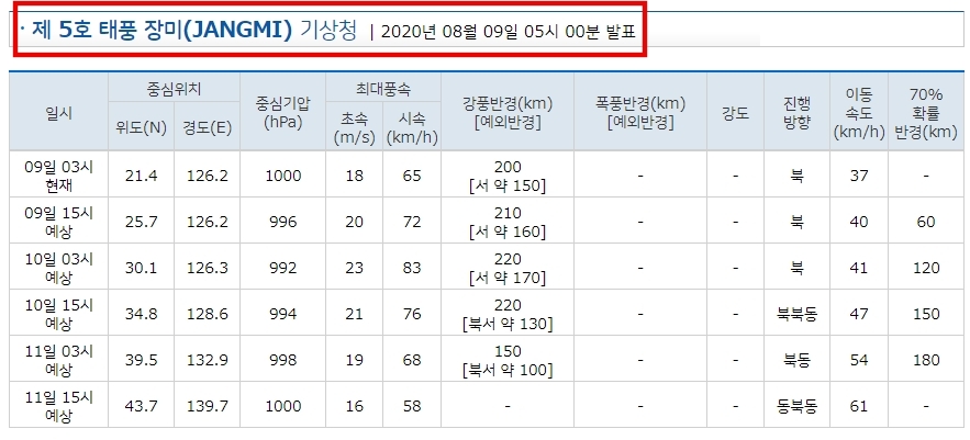 일본에서 발표한 기상 정보도 다르지 않은데요.