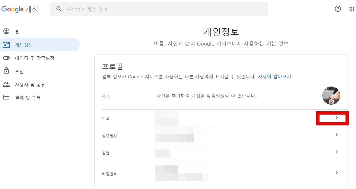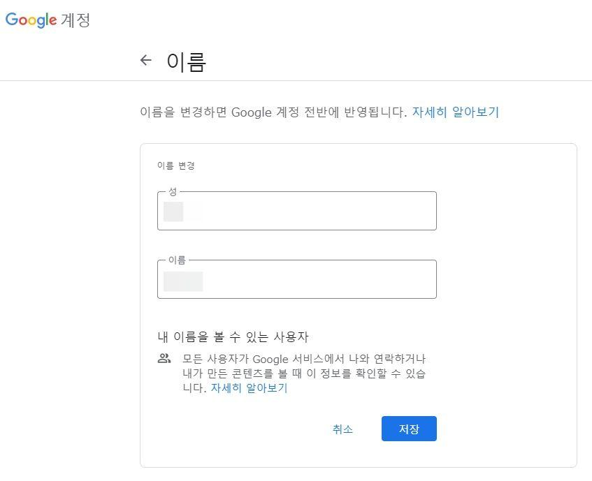 ※ 주의사항> 여기서 이름을 변경하면 구글 계정(gmail 등)에까지 영향이 미칩니다. 지메일의 이름도 함께 변하더라고요. 그러니 지메일을 업무용이나 중요한 용도로 쓰시는 분들은 이 방법을 사용할 경우, 신중하게 이름을 변경해야 합니다. 그냥 막 웃긴 거 도른미 뿜뿜하는 이름으로 바꾸시면 부끄러워서 이불킥하게 됩니다. 그리고 다시 이름을 변경하려 해도 90일 후에나 가능하다는 점도 꼭 기억하세요. (3번째 방법을 추천드립니다.)