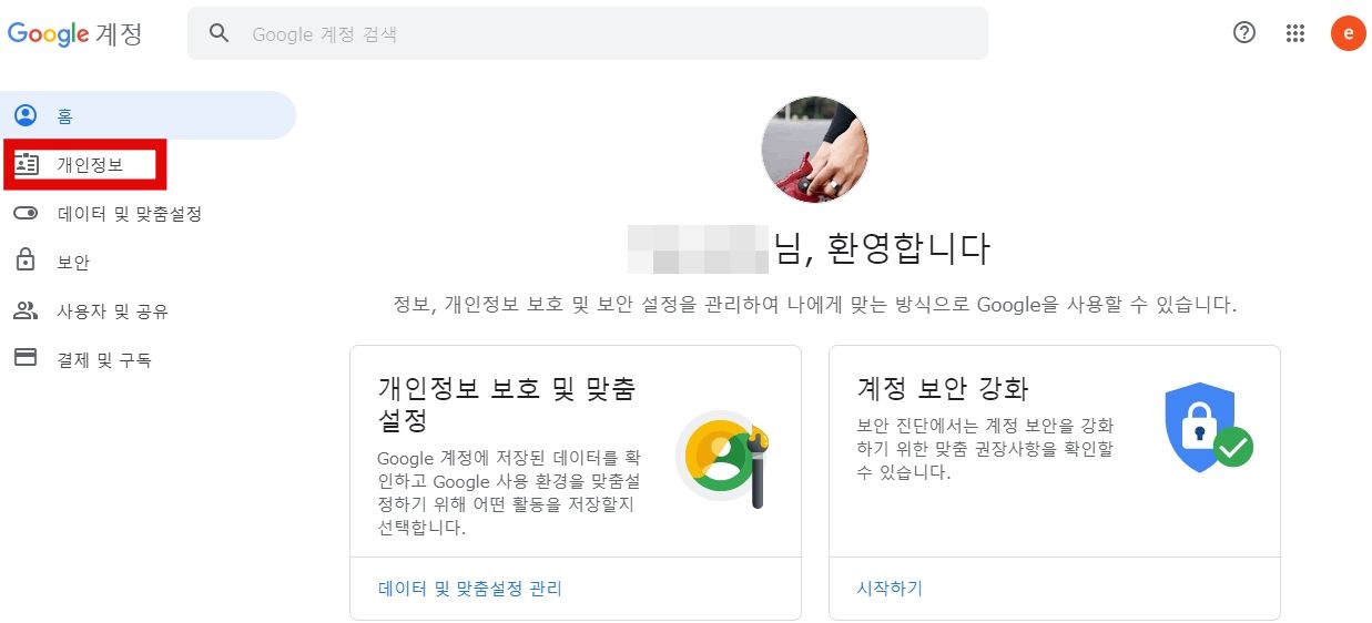 <개인정보>를 클릭합니다.