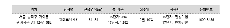 - 서울특별시 송파구 거여동 위례포레샤인15단지(공공분양)A1-12