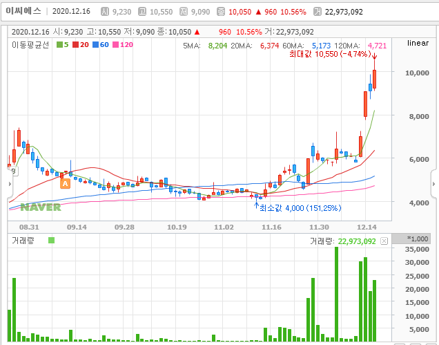 거래량이 완전히 죽었거든요. 계속 던지려고 했다면 훨씬 더 빠졌을 텐데요. 그러다 상승하려고 꿈틀되는 것 같은 차트로 보였어요. 계속 하방으로 갈 것 같은데, 거리두기 3단계라는 재료를 받아서 추세가 전환된것 같은 느낌이랄까요. 원래 한번 주가가 내리기 시작하면 쭉쭉 내려가고 물린 사람들이 계속 매도를 해서 주가가 하락하는 그림을 보이는데, 특별한 재료도 없이 상승을 타고, 이탈하는 사람도 없어보여서 좋은 재료(거리두기 3단계)가 나오면 오르겠다 생각했어요. 그런데 진짜 오늘 23% 급등. 오전 거래량부터 터지더라니... 아직 거리두기 3단계 전이지만 2단계로 떨어질 일은 당분간 없어보이니, 오늘 1,000명 이상의 확진자가 나온 것이 도화선이 되었나 보네요.