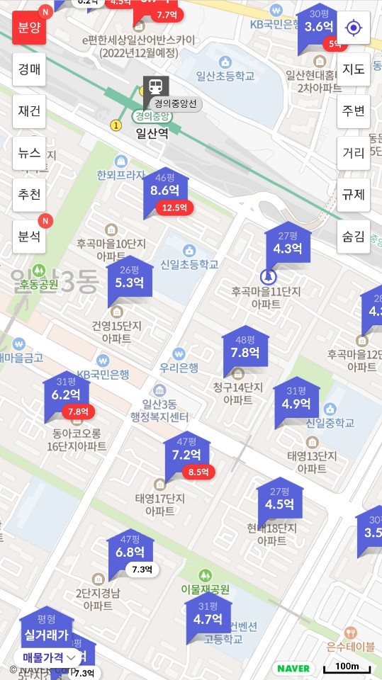 지금 일산은 한달동안 2억이 올랐다고 합니다. 일산신도시 후곡마을 상황을 보면 일산역 바로 앞인 후곡마을10단지가 11월19일에 9억4천5백에 계약이 됐는데 현재 매물 평균가가 12억5천입니다. 물론 매물가가 시세는 아니지만, 한달 사이에 3억을 올려놓았네요. 일산은 그동안 너무 눌려있었고, 잠시 조정에서 풀렸다가 다시 묶여서 안타깝다 생각했었는데 이제는 급등을 하네요. 일산분들은 아직도 목이 마르다! 라고 하고 계시지만요. 서울의 전세 난민들이 인근 지역의 전세가격과 매매가를 올려놓고 있습니다. 이건 투기가 아니라고 봐요. 실수요인 거죠.