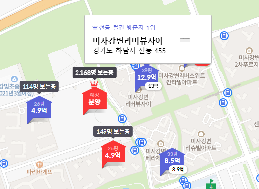 현재 바로 옆단지인 경기하남시의 미사강변리버뷰자이는 전용면적 102㎡가 지난 9월28일에 12억 9천, 10월에는 13억 6500만원에 거래됐다고 하네요. 힐스테이트리슈빌강일의 전용 101㎡의 분양가가 약 9억이니, 3~4억의 시세차익을 볼 수 있겠네요.