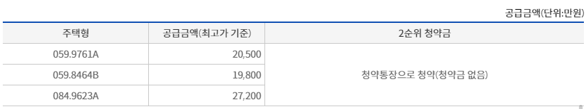 - 층별(동호수별) 세부 공급금액은 사업주체의 입주자모집 공고문 참조