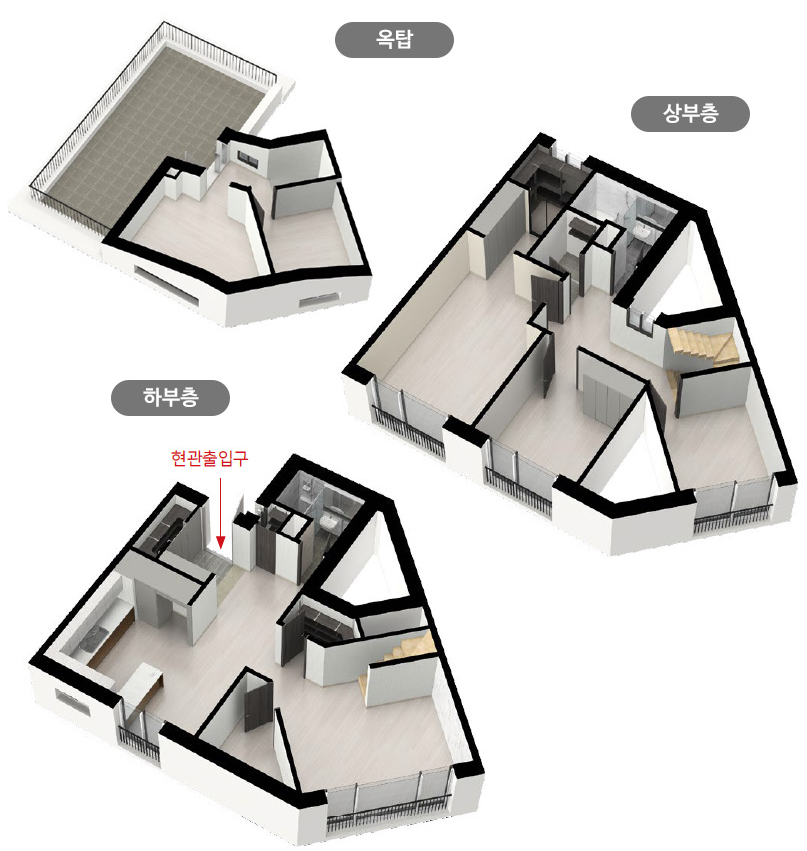 5. 특징: 평수와 타입에 따라 옥탑이 있기도 하고 복층 구조로 설계 되어있네요. 지하가 바로 주차장인 구조도 있어서, 단독주택에서 차 세우고 바로 문 열고 집에 들어가는 느낌? 굉장히 독특합니다. 여수의 대표 관광지를 집에서 파노라마 필름을 보듯이 조망할 수 있다고 하니, 여수는 가본 적도 없지만 관심이 갑니다.