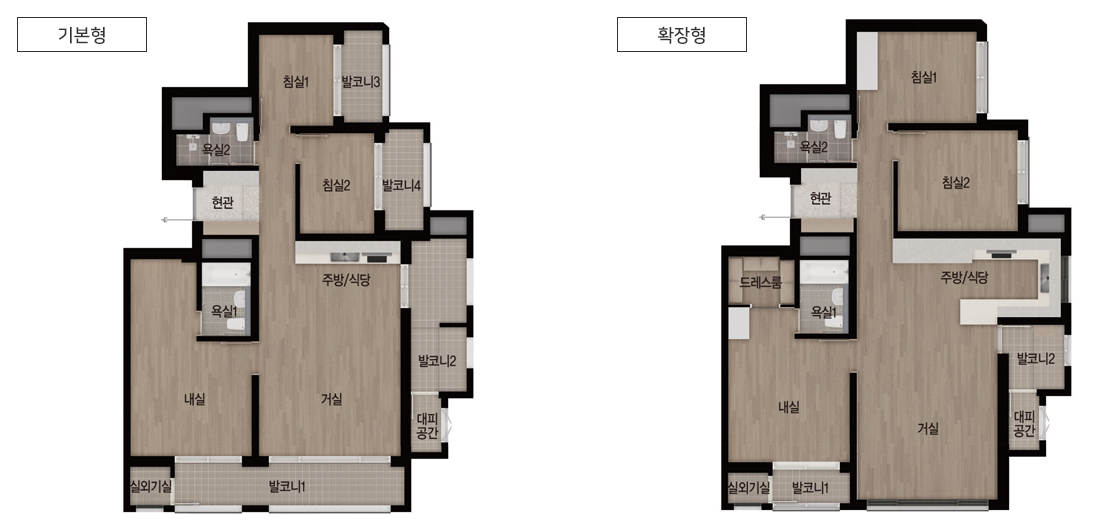 * 드레스룸이 확장형에만 있네요. 요즘은 분양가를 높이지 못하니까 옵션 항목을 늘려서 결국은 가격이 올라가는 효과? ㅠ.ㅠ