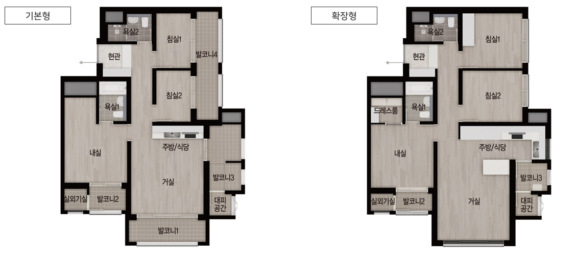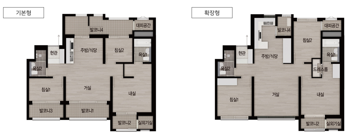 * 드레스룸이 확장형에만 있네요. 요즘은 분양가를 높이지 못하니까 옵션 항목을 늘려서 결국은 가격이 올라가는 효과? ㅠ.ㅠ