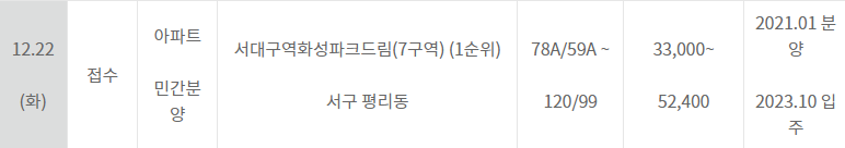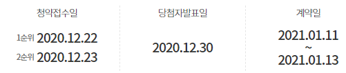 - 12월21일(월) 특별공급. 22일~ 1순위 청약 시작
