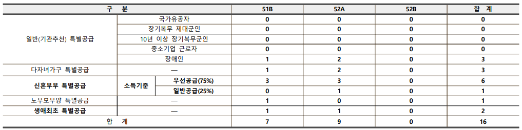 5. 특별공급 신청자격별, 주택형별 공급세대수