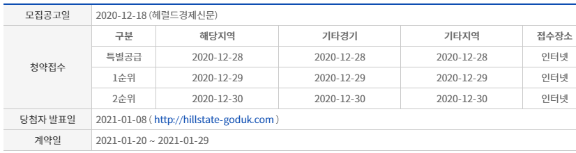 * 특별공급 종류에 따라 접수기간 및 장소가 다를 수 있으니 모집공고를 반드시 확인하시기 바랍니다.