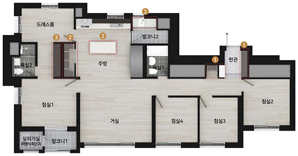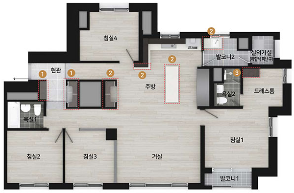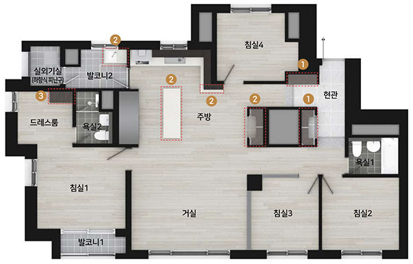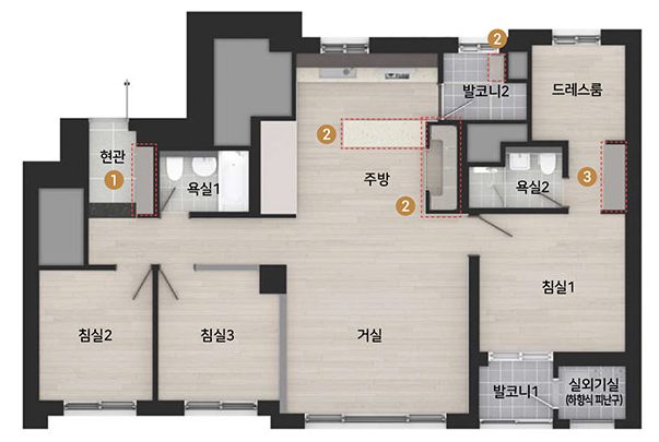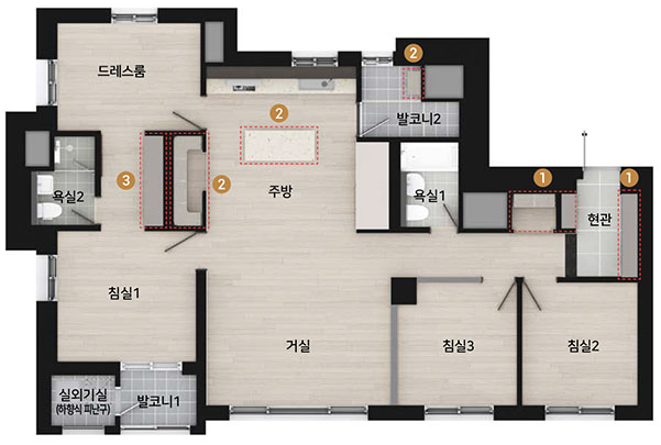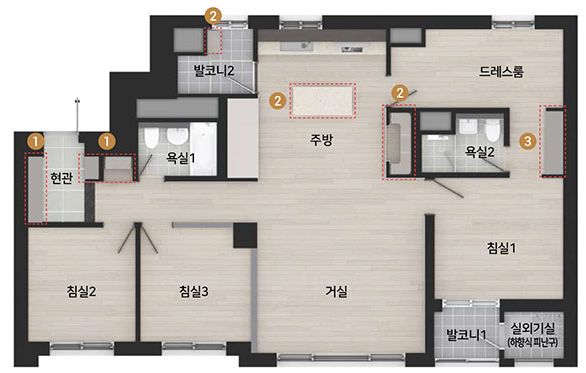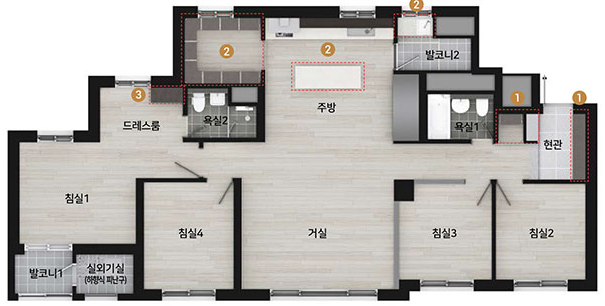 3) 115.28㎡/84.33B㎡(34평/25B평)