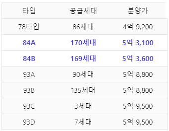 - 특징: 전매제한, 분양가상한제, 전용78-84m2, 청약과열지역, 대규모택지개발지구