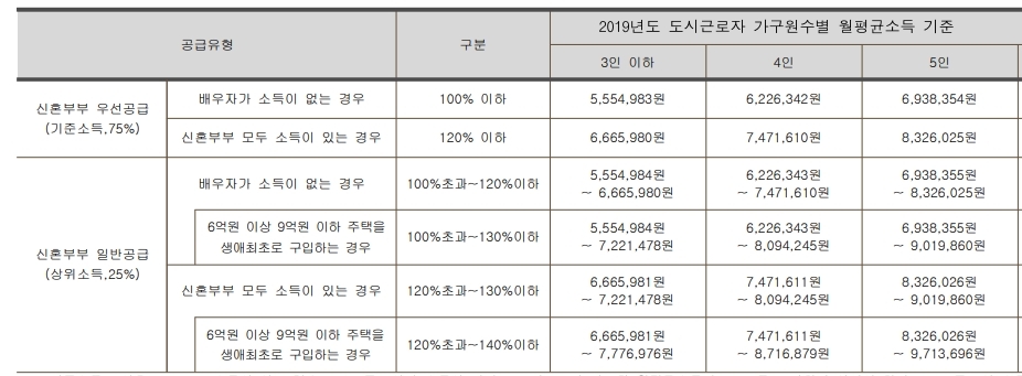 (1) 적용시기:  21년 1월부터이지만, 입주자공고가 언제 나느냐에 따라 달라질 수 있으니 개별 단지에 적용되는 소득요건은 <입주자모집공고문> 등을 통해 꼭 확인하세요.