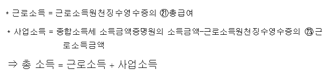 총 소득 = 근로소득 + 사업소득 (매우 중요)
