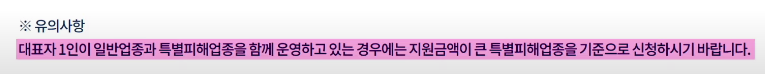 * 사업체가 여러 개인 경우, 1개 사업체만 신청 가능