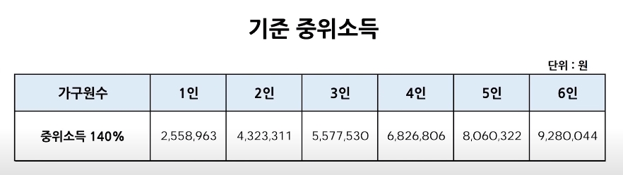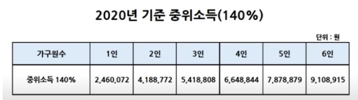 * (위) 21년 기준 중위소득 / (아래) 20년 기준 중위소득