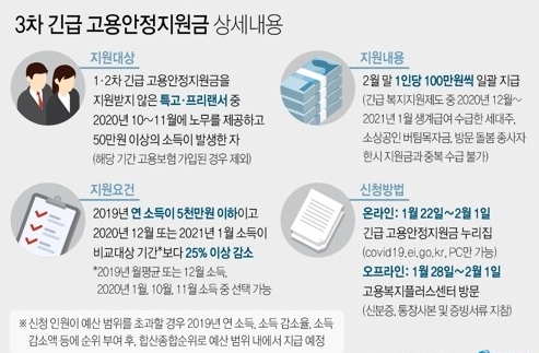 특고 프리랜서 3차지원금 재난지원금 특수고용직 긴급 고용안정지원금 1월22일부터