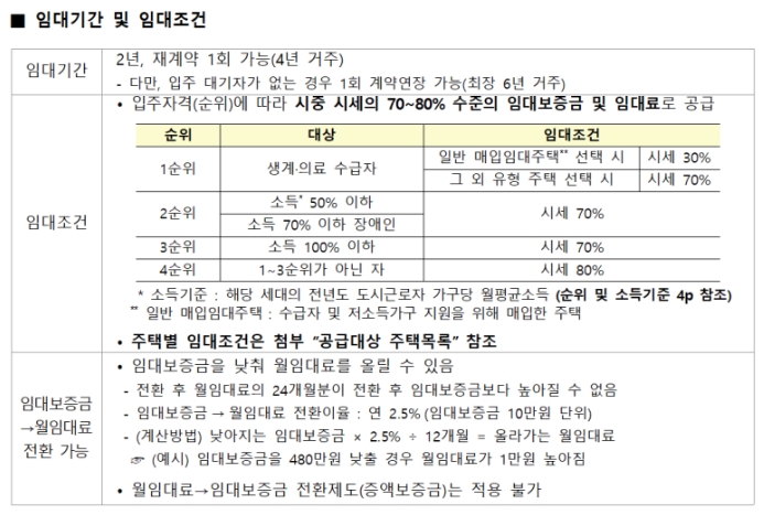 - 이후 해당 주택에 예비 입주자가 없는 경우 추가로 2년 더 거주 가능