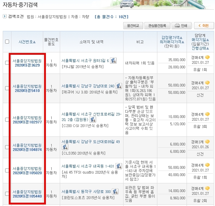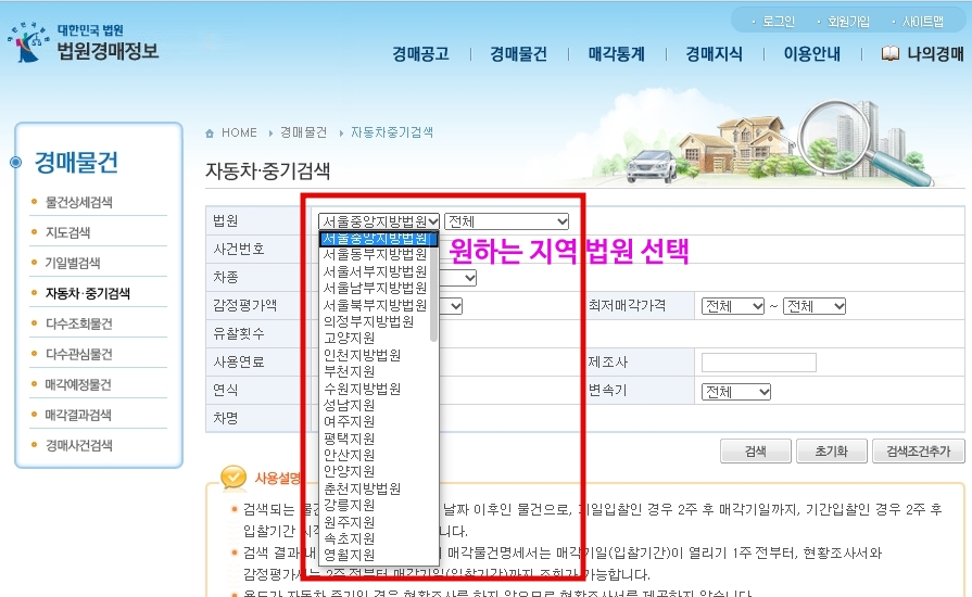 그럼 경매에 나온 자동차는 어떻게 찾을까요?