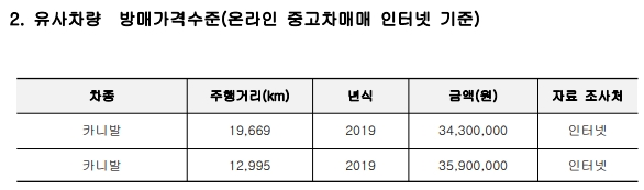 7-4. 유사차량의 매매가격을 확인할 수 있습니다.