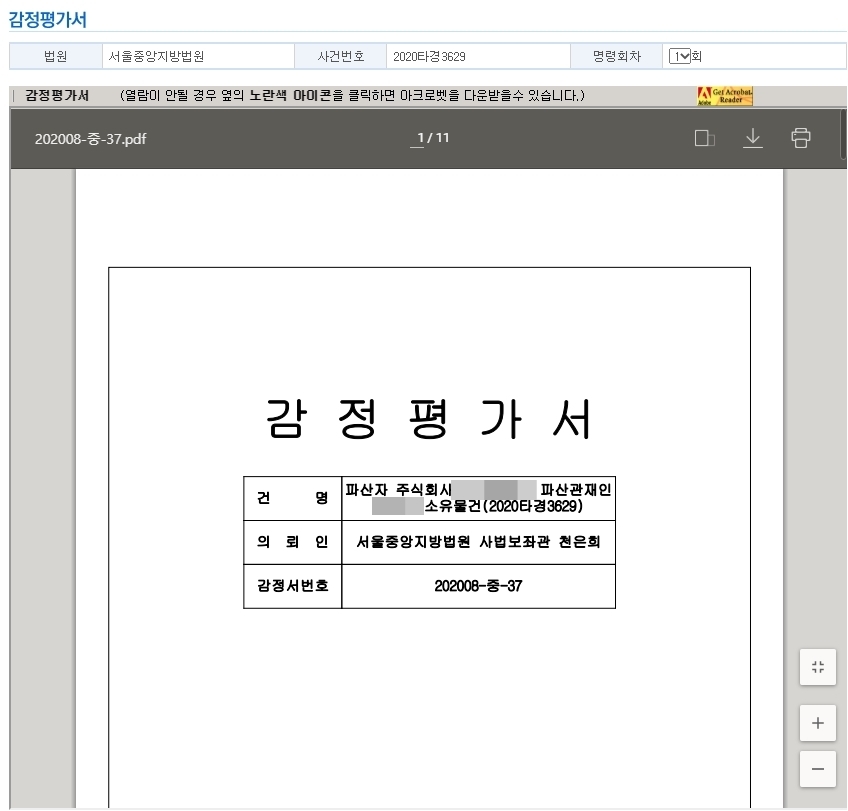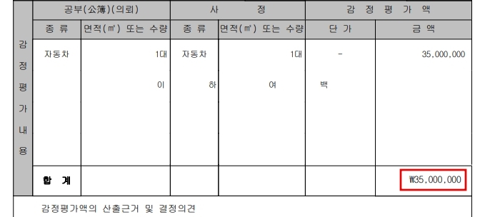 7-1. 감정평가액과 평가액 산출 근거 등을 여기서 볼 수 있습니다.