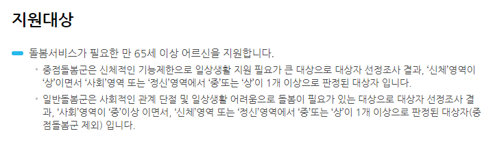 * 참고2) 원래 어르신들이 한 가지만 선택할 수 있었고, 중복 지원이 불가했는데 2020년부터 통합되면서 모든 서비스를 받을 수 있게 되었습니다.