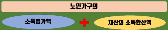 : 노인 가구의 소득평가액에 재산의 소득환산액을 더한 금액을 말합니다.