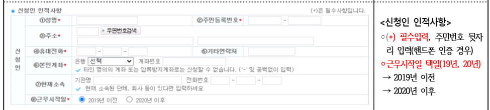 2. A, B 공통) 신청인 인적사항 입력