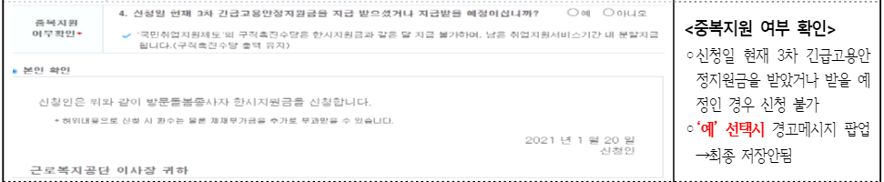 4. A, B 공통 ) 지원금 중복여부 확인 (3차 긴급고용안정지원금을 받았다면 신청 불가)