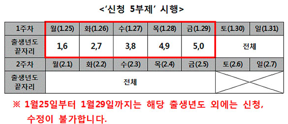 ※ 1월 25∼29일에만 5부제 적용
