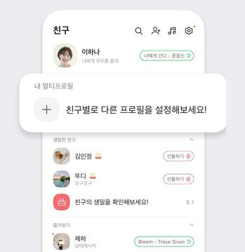 - 멀티프로필 지정이 가능하고, 내 멀티프로필 > 친구관리 > 프로필 친구 관리에도 표시되어 관리할 수 있습니다.
