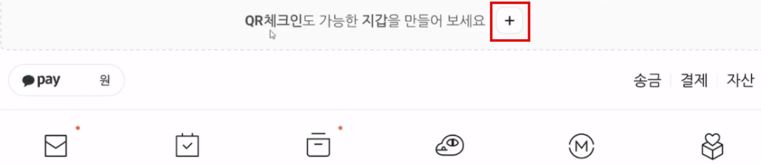 2. 아래와 같이 보일 거예요. 먼저 +를 눌러 지갑서비스에 가입해줍니다. 간단한 약관 동의, 본인인증을 통해서 만들 수 있습니다.