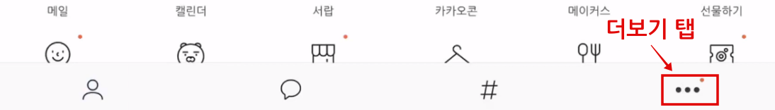 1. 멀티프로필을 설정하려면 먼저 카카오 지갑서비스에 가입되어 있어야 합니다. 지갑서비스에 가입되어 있지 않다면 <더보기>탭을 누르세요