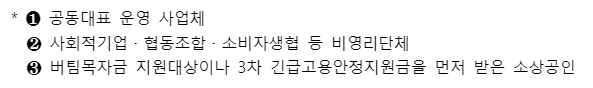 - 집합금지·영업제한 업종 가운데 버팀목자금을 100만~200만 원 덜 받은 업체, 버팀목자금 지급 대상은 아닌 것으로 조회됐으나 지방자치단체에서 사회적 거리두기 방역조치 행정명령 이행확인서를 발급받은 소상공인