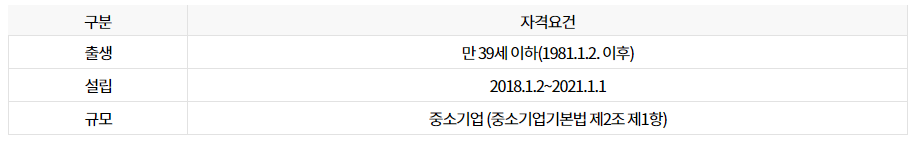 - 대표자가 만 39세 이하 (21년 1월1일 기준)