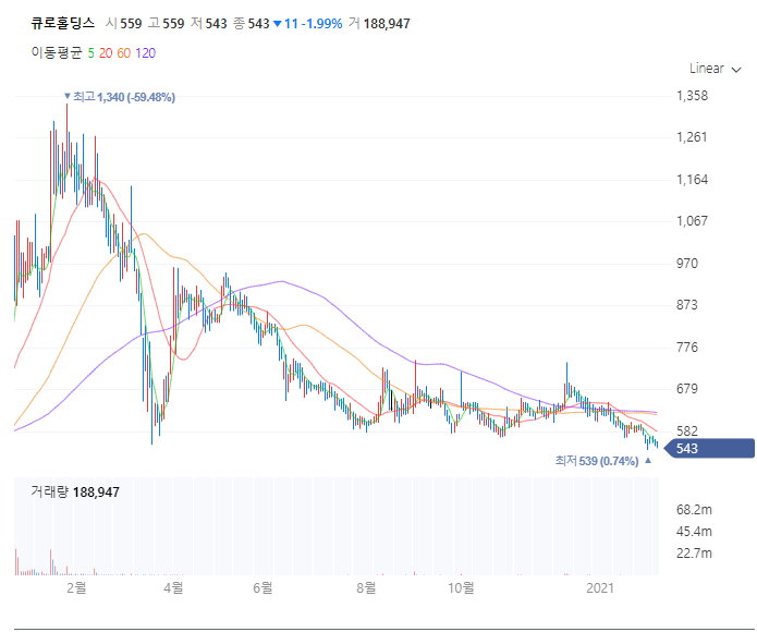| 51780 | 큐로홀딩스 | 543 | 1,265 | 539 | 43% | 101% |