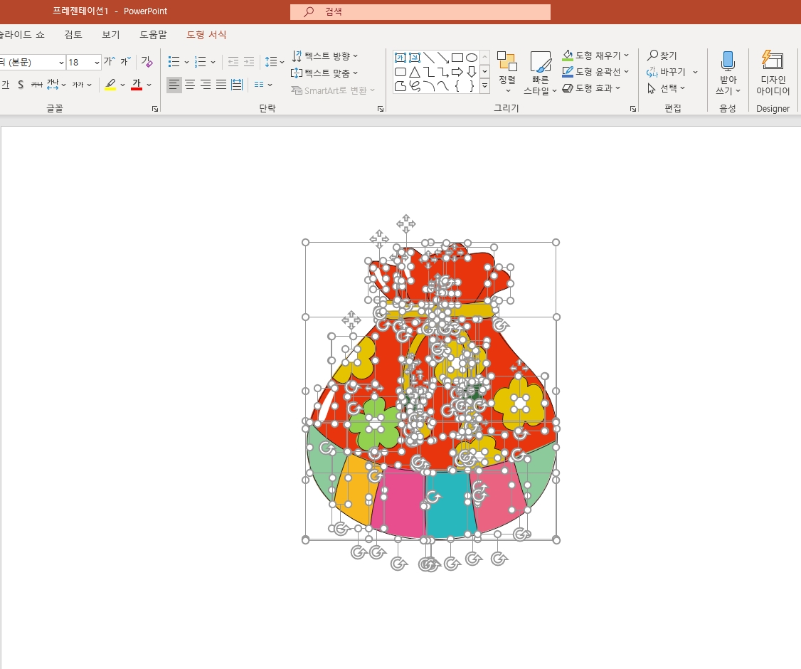 8. 그룹화를 해제하고 나서 아래 꽃 하나만 색을 바꿔주었습니다.