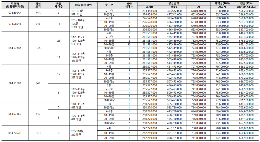 ■ 공급내역 및 공급금액 (아래 내용이 잘 안 보이면 모집공고를 다운로드 받아서 확인하실 수 있습니다)