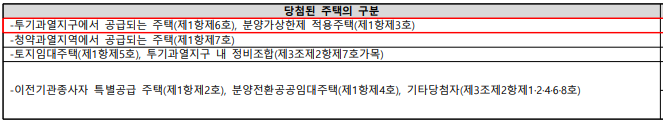 - 해당 주택건설지역(인천광역시 연수구)은 투기과열지구 및 청약과열지역으로서 담보인정비율(LTV), 총부채상환비율(DTI)등 대출제한이 적용되며, 본 아파트는 「주택법」 제49조 제2항 및 「주택법 시행 규칙」 제21조 제2항에 따라 사용검사가 완료된 아파트로서 분양대금을 당첨자 본인 책임하에 조달하여 지정된 기일 내에 납부하여야 합니다.(단, 대출제한 사항은 향후 관계 법규 개정에 따라 변경될 수 있음.)