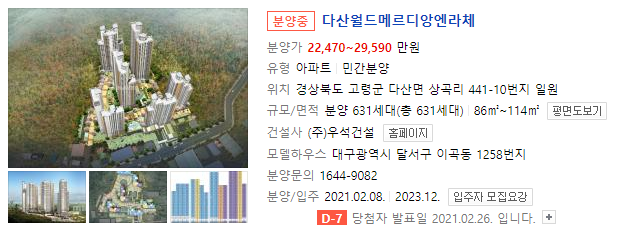 다산 월드메르디앙 엔라체(경북) 모집공고
