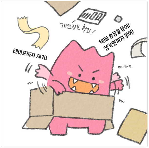 ※ 택배송장 중 주소, 이름 등 개인정보 부분만 일부 제거해서 버리면 과태료 부과 대상입니다. 접착면까지 전부 제거하셔야 합니다.