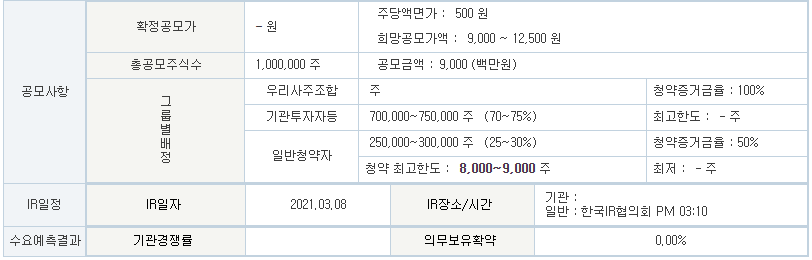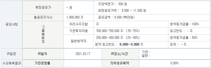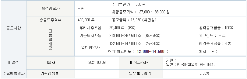 주식수: 575,000~690,000 주   /   청약한도: 28,000~34,000 주