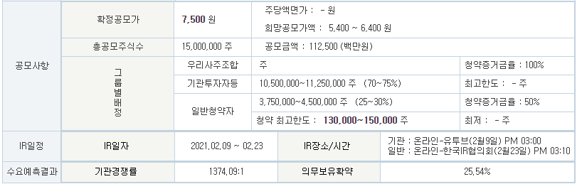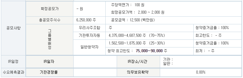 주식수: 1,562,500~1,875,000 주   /   청약한도: 75,000~90,000 주