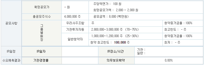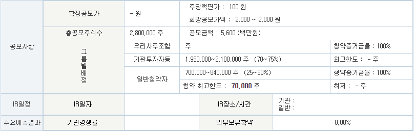 주식수: 700,000~840,000 주   /   청약한도: 70,000 주