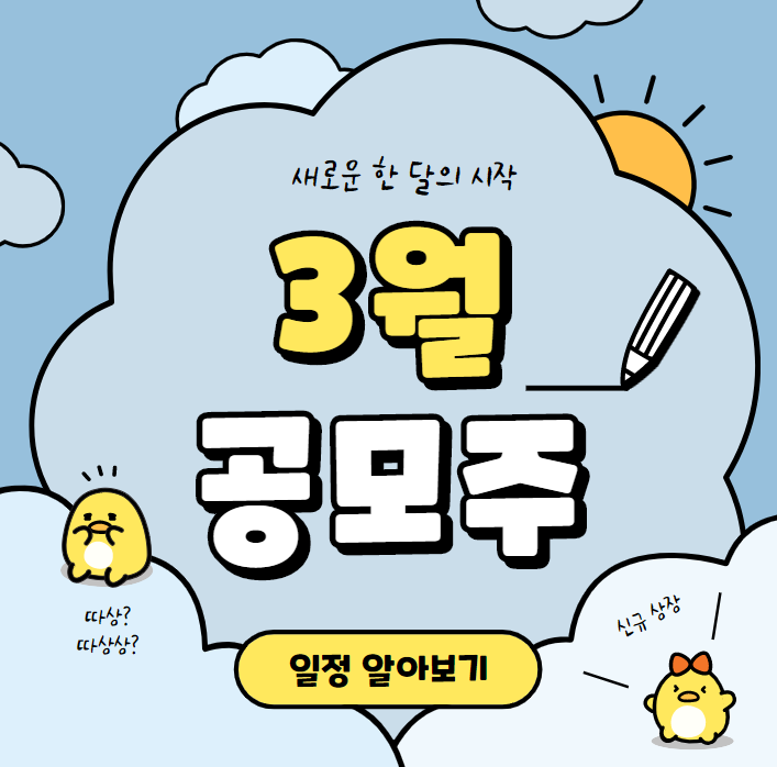 SK바이오사이언스는 백신전문 기업이라는 것은 다들 아실 테고, 요즘 계속 입에 오르내리는 아스트라제나카 백신을 위탁생산하는 업체로도 유명합니다. 가장 주목 받는 코로나19 백신 생산 업체에 바이오라는 테마까지 얹어졌으니 뜨겁지 않을 수가 없을 것 같습니다. 이 외에도 아래와 같이 3월 한달간 공모주 일정이 예정되어 있으니 관심 있으신 분들은 잘 알아보시고 참여해보세요.