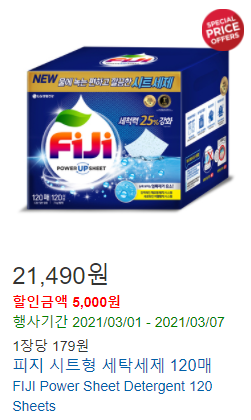 32) 피지 시트형 세탁세제 120매